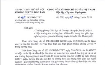 Cv số 1378 ngày 07/05/2020 của SGDĐT v/v thực hiện các biện pháp phòng, chống Covid-19 trong trường học